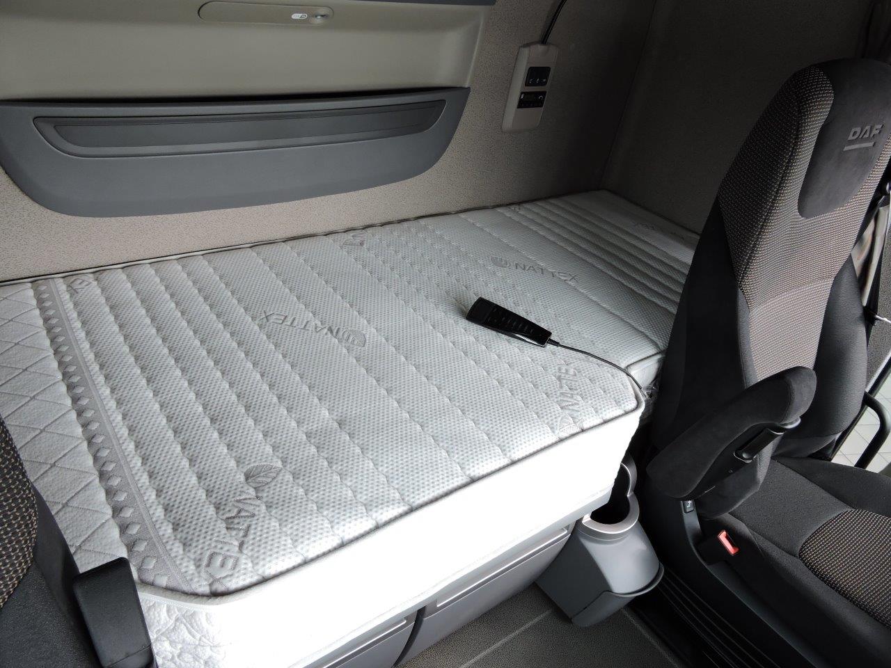 Die Cargosleep Matratze wird für die Fahrerkabinen aller großen LKW Hersteller auf Maß gefertigt. Die 18 Zentimeter starke Mehrzonen-Matratze ist mit 10 Oszillationsmodulen und 5 Therapiezonen ausgestattet. Der Bezug ist abziehbar und bei 60 °C waschbar. Weitere Infos unter www.cargosleep.de