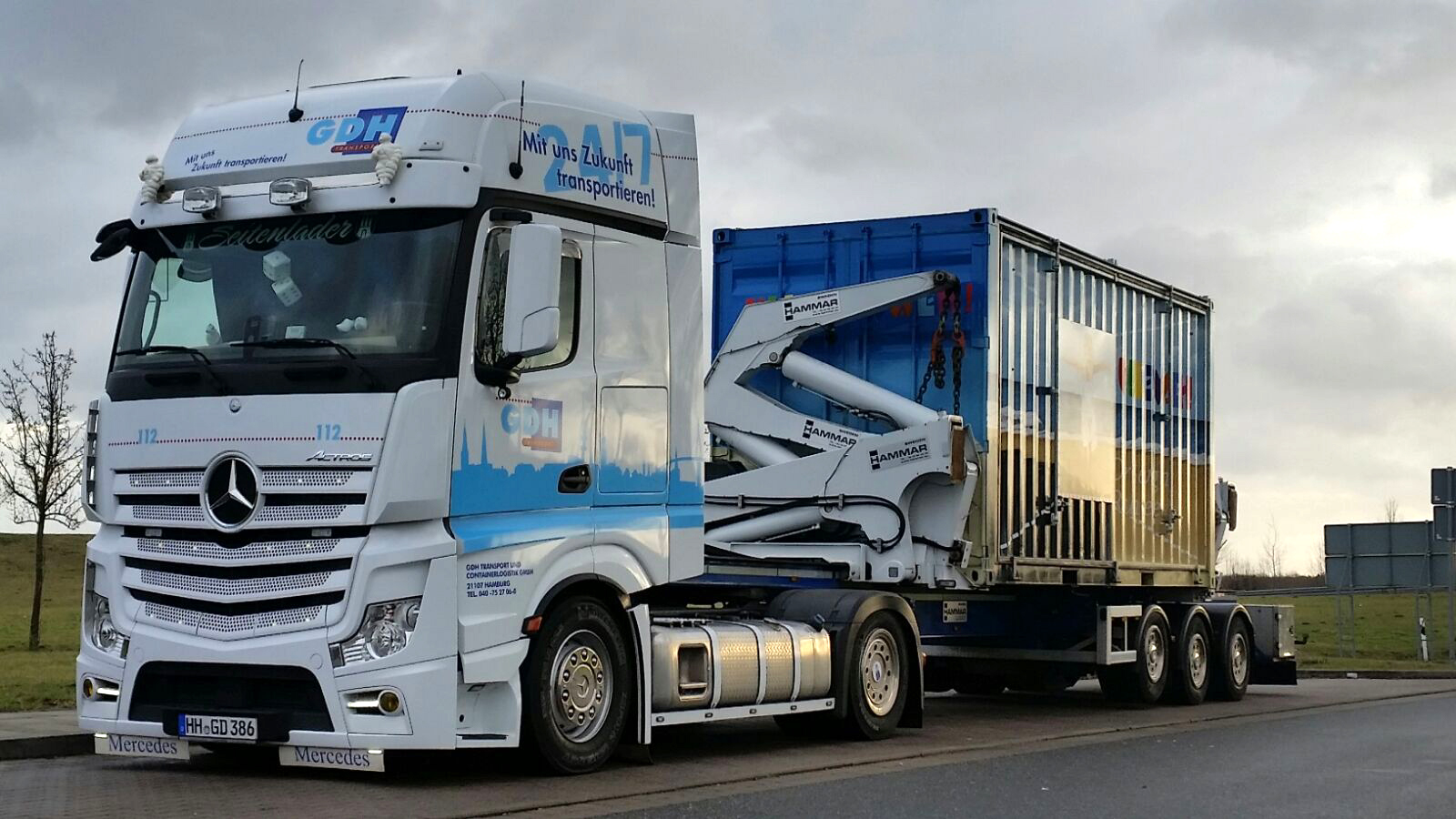 Die GDH-Transport und Containerlogistik GmbH mit Sitz in Hamburg ist ein inhabergeführter Logistikdienstleister, der sich auf Containertransporte sowie Teil- und Komplettladungen im Nah- und Fernverkehr spezialisiert hat. Das im Jahr 1981 gegründete Unternehmen verfügt über mehr als 100 ziehende Einheiten. Zu den Besonderheiten des eigenen Fuhrparks zählen zwei Seitenlader für das ebenerdige Aufnehmen und Absetzen von 10´, 20´ oder 40´Containern. GDH war 1982 der erste Anbieter eines Seitenladers in Hamburg. Vor dem Hintergrund der SOLAS-Konvention hat GDH eine zertifizierte Wiegetechnik entwickelt, mit deren Hilfe das Gewicht eines Containers bereits beim Anheben mit dem Seitenlader ermittelt wird. Die in den Seitenlader integrierte zertifizierte Waage übermittelt das Container-Gewicht per Funk an eine On-Bord-Unit im Fahrerhaus der Zugmaschine.