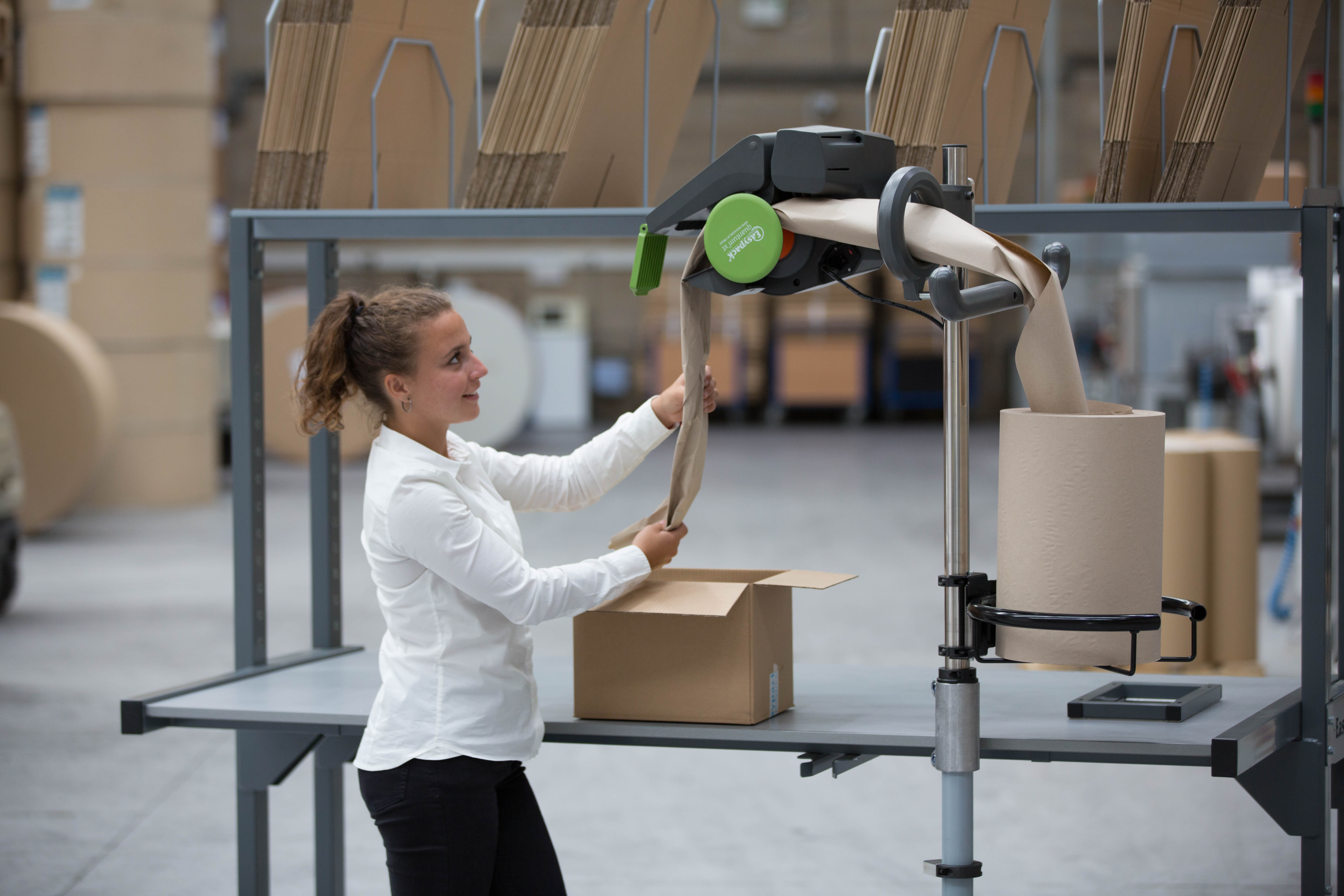 Das neue System produziert Papierbahnen aus 100% recyceltem, recycelbarem und biologisch abbaubarem Papier, mit denen Waren und Produkte unterschiedlichster Größe und Gewichte in Kartons fixiert und geschützt werden können. Benutzer können die benötigten Längen sowie die Ausgabegeschwindigkeit vorwählen und das System zudem mit einem Fußschalter steuern. So kann der Anwender direkt in der Box packen und spart Zeit und Kosten.